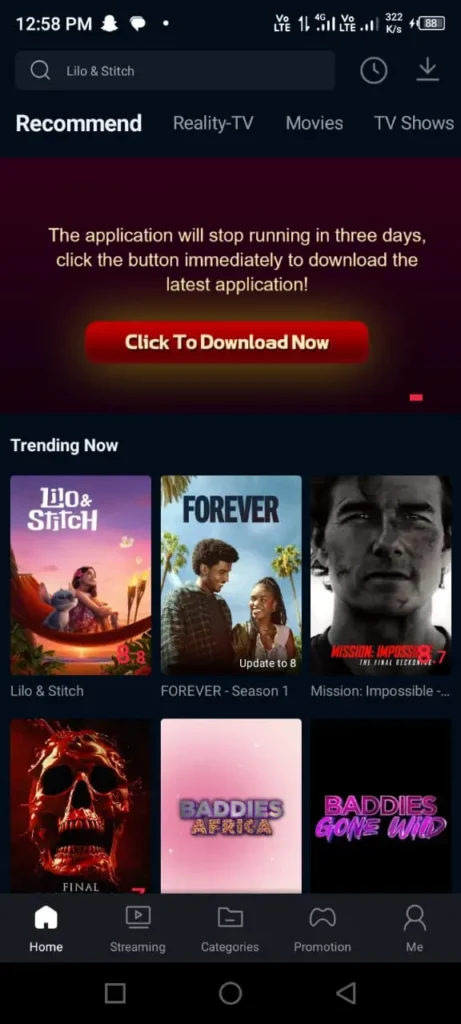 There are also categories like Trending, Latest, Action, Drama, and more, which make it super easy to browse based on your mood. Just swipe through them to explore.